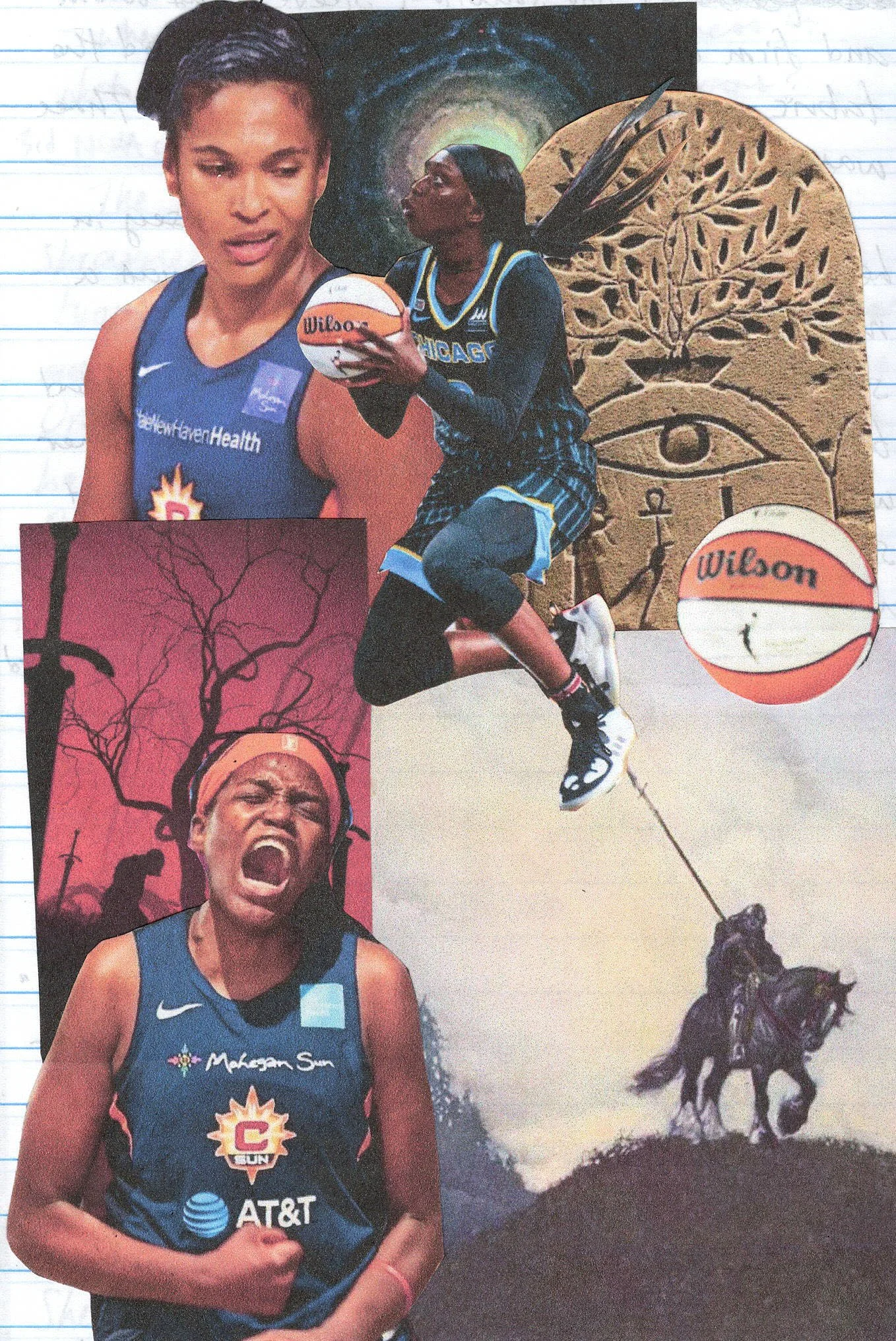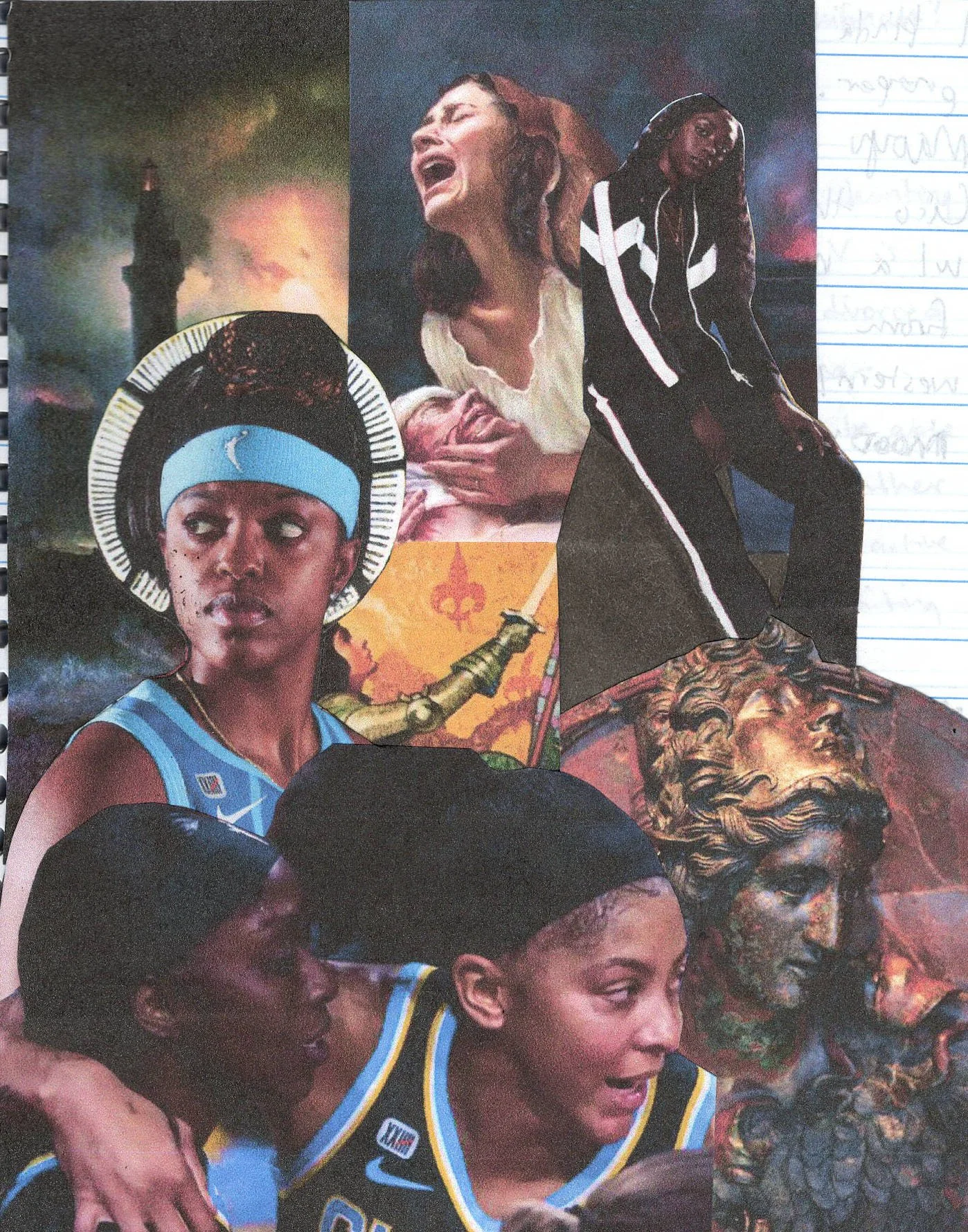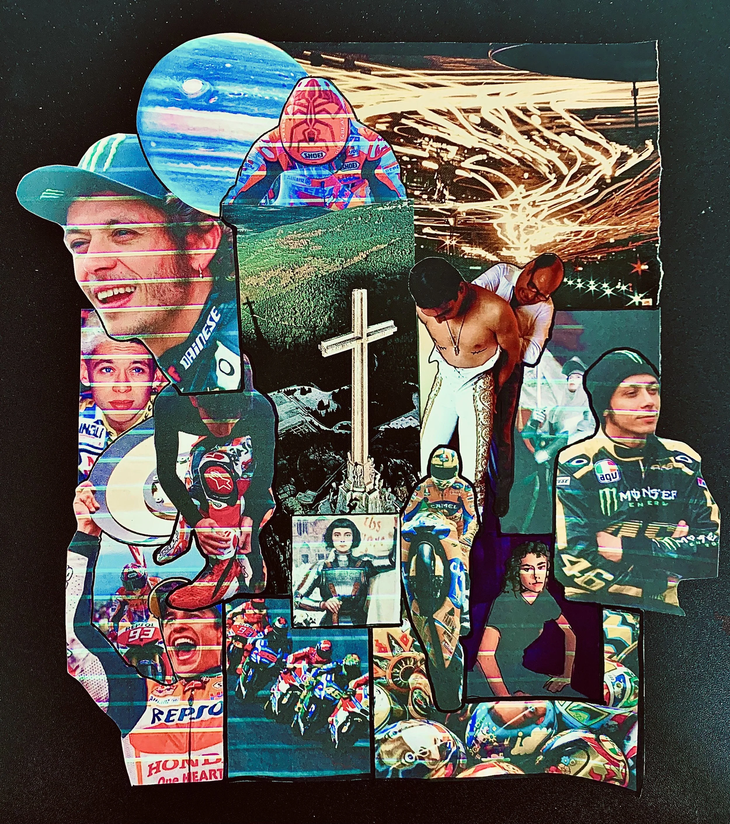 Handmade collages are a critical component of my creative process. Pictured are collages for MIND THE GAP and two fantasy projects, one dealing with women’s professional basketball and the other in the world of the BONEYARD.